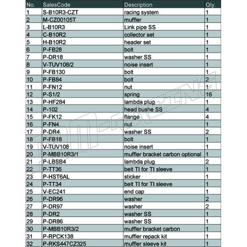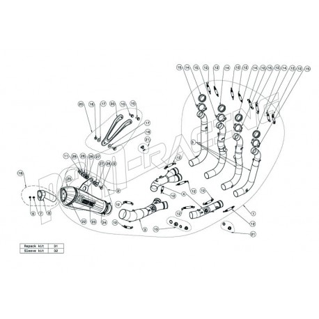 Pièce de rechange pour ligne Akrapovic Racing Line S1000RR 2009-2014 référence S-B10R1-RC et S-B10R-RT.