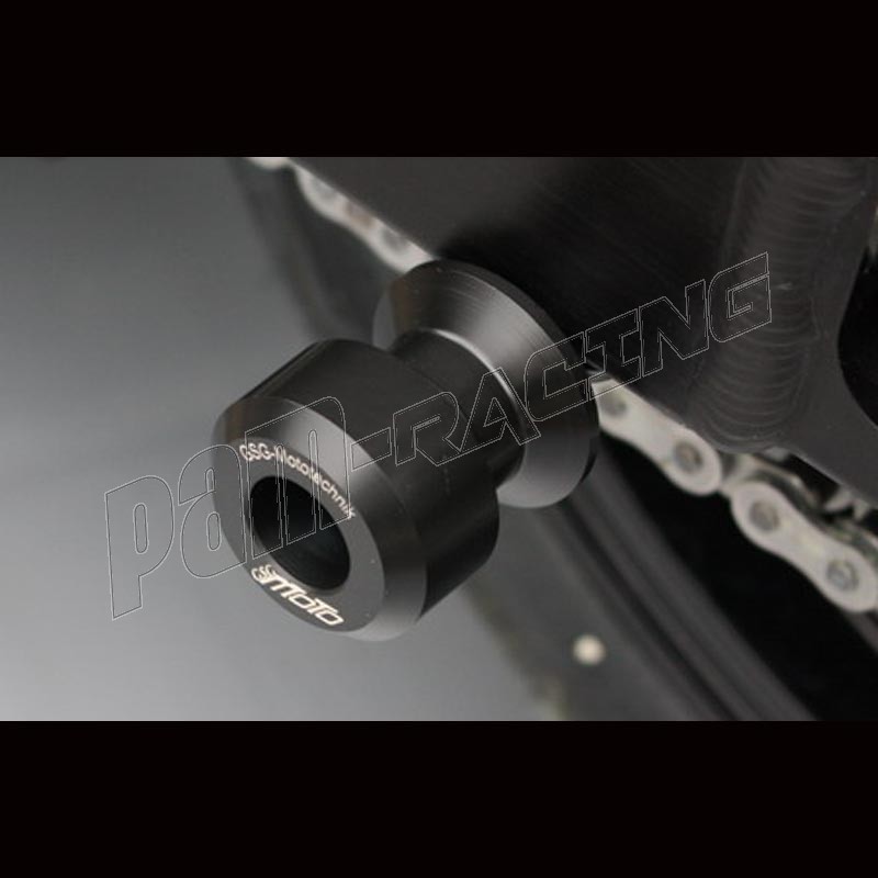 GSG Moto, société Allemande réputée pour la qualité de fabrication de pièces aluminium taillées dans la masse et de protections (avec absorbeurs de chocs), présente ici ses tampons de protections de chute.