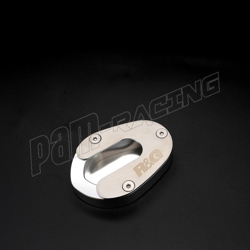 Les patins de béquille R&G Racing se vissent sur votre béquille d’origine et doublent la surface d’appui, pour éviter l’enfoncement dans le sol. Malgré sa taille plus importante, la garde au sol et la ligne de chaine ne sont pas affectées dans des conditions normales de conduite.