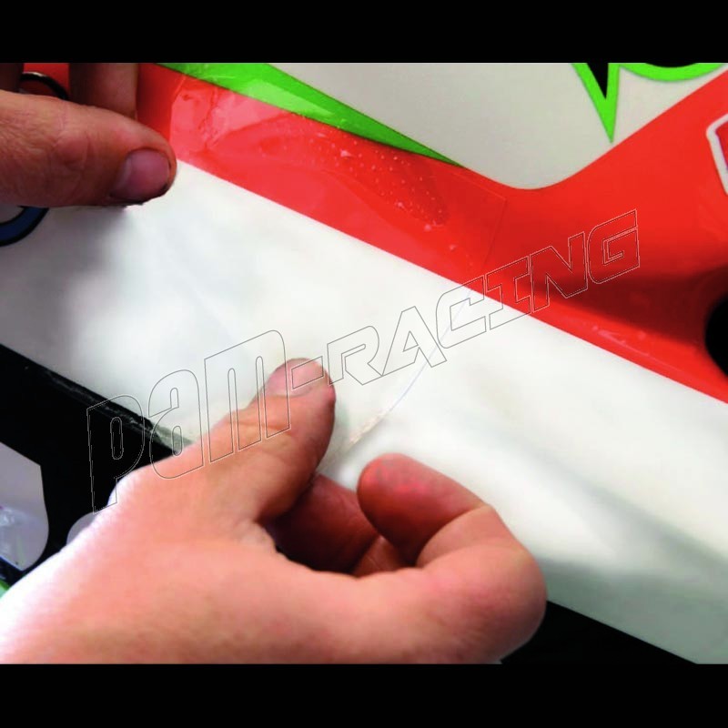 Les kit standards incluent les films protecteurs prédécoupés destinés au garde boue avant, à la fourche, aux carénages avant ainsi qu’au dosseret de selle.