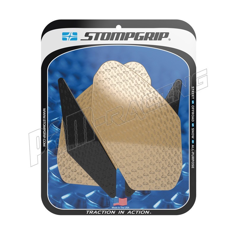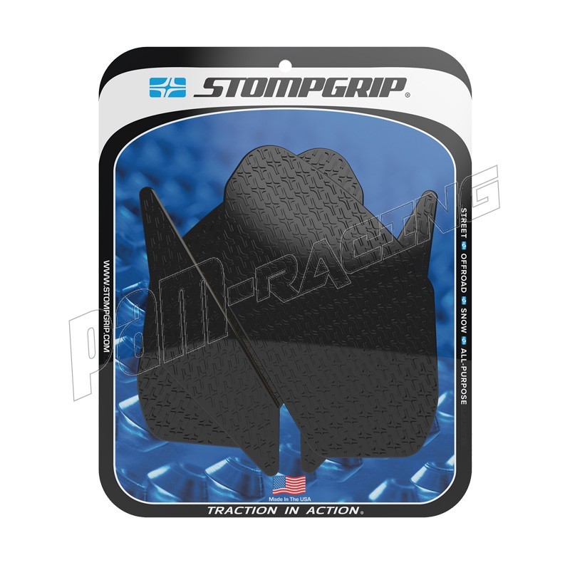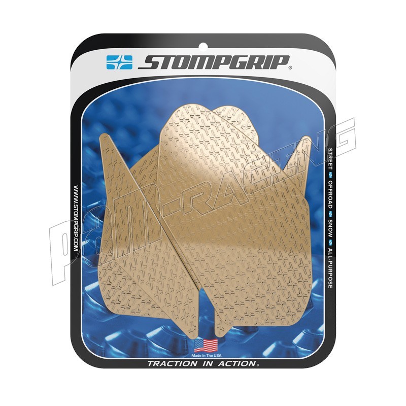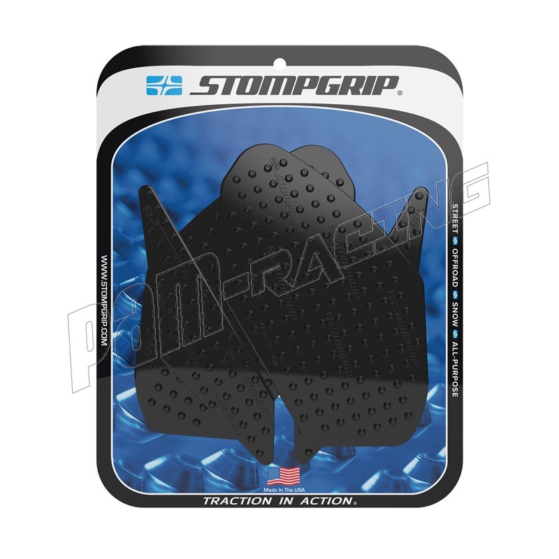 En 2002, STOMP Design élargit sa gamme jusqu'aux sports mécaniques, en lançant les grips de réservoir STOMPGRIP, spécialement conçus pour les moto-cross. Ces grips abrasifs ont pour vocation de garder le pilote en selle, en collant à son pantalon ou à ses bottes. Ils sont depuis lors applicables aux machines de route, de cross ou de quad. Ce sont finalement des accessoires indispensable, et des alliés contre la fatigue et le ballotage, quelle que soit votre machine de prédilection. Les grips sont spécialement conçus en fonction de la physionomie de chaque machine, ils sont également coupés à l'arrondis, afin d'éviter les décollements précoces. La surface en caoutchouc est soit transparente, soit noire, pour respecter l'esthétique de votre machine. Ces produits sont conçus pour s'user à la manière des pneus, et sont à remplacer périodiquement.