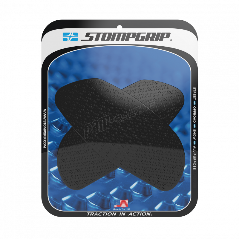 En 2002, STOMP Design élargit sa gamme jusqu'aux sports mécaniques, en lançant les grips de réservoir STOMPGRIP, spécialement conçus pour les moto-cross. Ces grips abrasifs ont pour vocation de garder le pilote en selle, en collant à son pantalon ou à ses bottes. Ils sont depuis lors applicables aux machines de route, de cross ou de quad. Ce sont finalement des accessoires indispensable, et des alliés contre la fatigue et le ballotage, quelle que soit votre machine de prédilection. Les grips sont spécialement conçus en fonction de la physionomie de chaque machine, ils sont également coupés à l'arrondis, afin d'éviter les décollements précoces. La surface en caoutchouc est soit transparente, soit noire, pour respecter l'esthétique de votre machine. Ces produits sont conçus pour s'user à la manière des pneus, et sont à remplacer périodiquement.