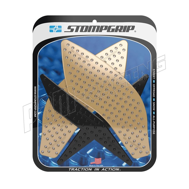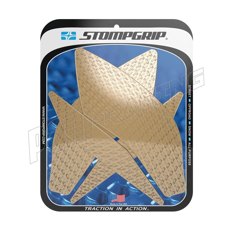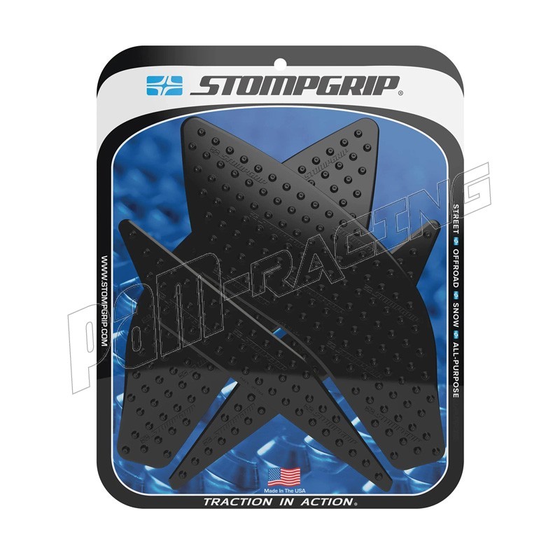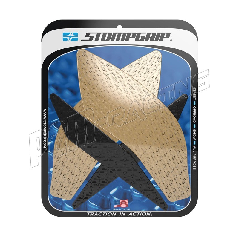 En 2002, STOMP Design élargit sa gamme jusqu'aux sports mécaniques, en lançant les grips de réservoir STOMPGRIP, spécialement conçus pour les moto-cross. Ces grips abrasifs ont pour vocation de garder le pilote en selle, en collant à son pantalon ou à ses bottes. Ils sont depuis lors applicables aux machines de route, de cross ou de quad. Ce sont finalement des accessoires indispensable, et des alliés contre la fatigue et le ballotage, quelle que soit votre machine de prédilection. Les grips sont spécialement conçus en fonction de la physionomie de chaque machine, ils sont également coupés à l'arrondis, afin d'éviter les décollements précoces. La surface en caoutchouc est soit transparente, soit noire, pour respecter l'esthétique de votre machine. Ces produits sont conçus pour s'user à la manière des pneus, et sont à remplacer périodiquement.