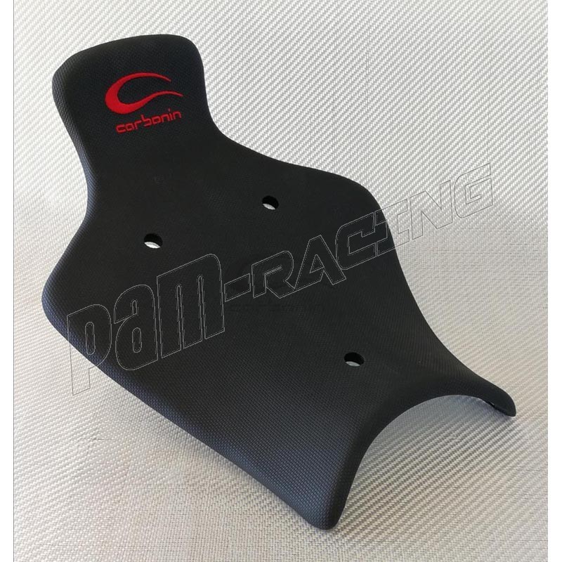Modèle pro : Selle néoprène Carbonin de type 'pro' sur socle détachable avio fibre.Selle recouverte d'un matérau offrant un grip important primordial dans les courbes.Les épaisseurs du socle, du tampon arrière ou toute autre dimension peuvent être choisies lors de la commande. Ce sont les selles utilisées par les teams officiels en WSBK ou en WSS. Ces selles reçoivent un brodage Carbonin sur le haut de la selle et un brodage à la demande sur la selle.