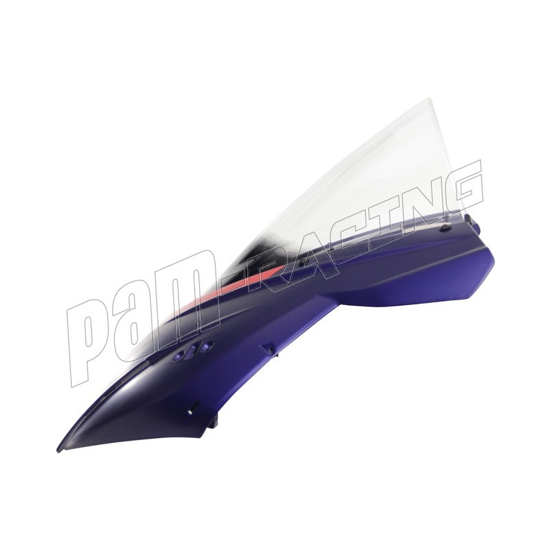 La bulle Racing correspond dans sa partie basse au pare-brise d'origine, mais comporte au milieu une surélévation arrondie afin de réduire la pression du vent sur le casque.Ce type de bulle a été développé en vue de réduire la résistance à l'air des motos de course et sportives.