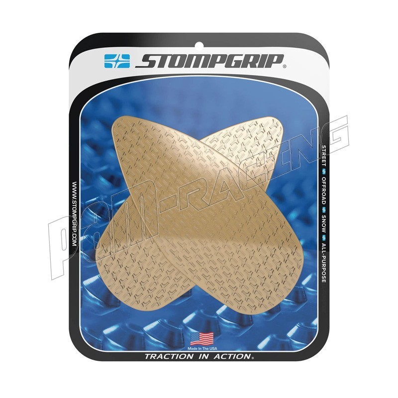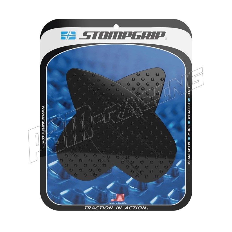 En 2002, STOMP Design élargit sa gamme jusqu'aux sports mécaniques, en lançant les grips de réservoir STOMPGRIP, spécialement conçus pour les moto-cross. Ces grips abrasifs ont pour vocation de garder le pilote en selle, en collant à son pantalon ou à ses bottes. Ils sont depuis lors applicables aux machines de route, de cross ou de quad. Ce sont finalement des accessoires indispensable, et des alliés contre la fatigue et le ballotage, quelle que soit votre machine de prédilection. Les grips sont spécialement conçus en fonction de la physionomie de chaque machine, ils sont également coupés à l'arrondis, afin d'éviter les décollements précoces. La surface en caoutchouc est soit transparente, soit noire, pour respecter l'esthétique de votre machine. Ces produits sont conçus pour s'user à la manière des pneus, et sont à remplacer périodiquement.