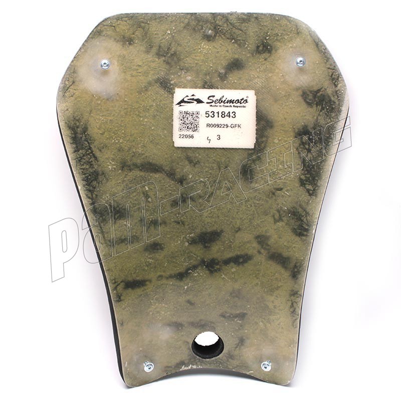 Mousse collée sur un support en fibre de verre moulé aux empreintes des selles racing SEBIMOTO. Contours de la mousse ébavurés pour une meilleure finition et s'adapte parfaitement à la selle.