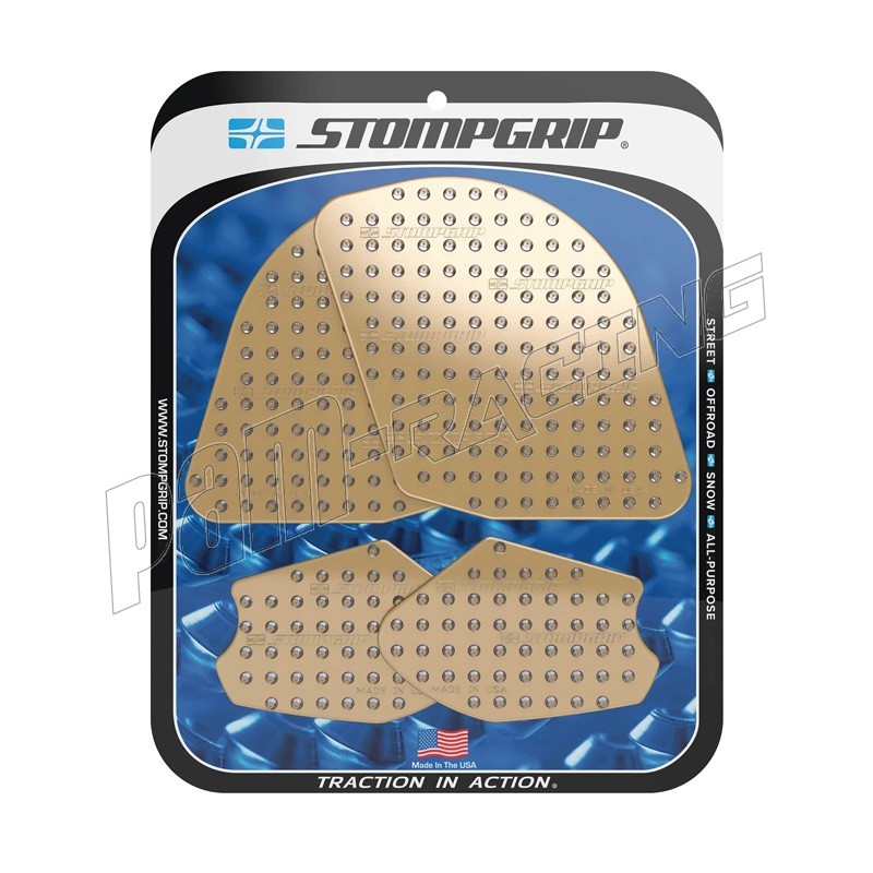 En 2002, STOMP Design élargit sa gamme jusqu'aux sports mécaniques, en lançant les grips de réservoir STOMPGRIP, spécialement conçus pour les moto-cross. Ces grips abrasifs ont pour vocation de garder le pilote en selle, en collant à son pantalon ou à ses bottes. Ils sont depuis lors applicables aux machines de route, de cross ou de quad. Ce sont finalement des accessoires indispensable, et des alliés contre la fatigue et le ballotage, quelle que soit votre machine de prédilection. Les grips sont spécialement conçus en fonction de la physionomie de chaque machine, ils sont également coupés à l'arrondis, afin d'éviter les décollements précoces. La surface en caoutchouc est soit transparente, soit noire, pour respecter l'esthétique de votre machine. Ces produits sont conçus pour s'user à la manière des pneus, et sont à remplacer périodiquement.