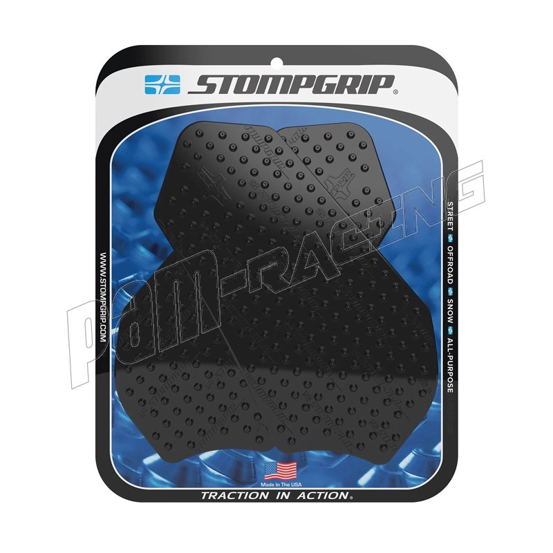 En 2002, STOMP Design élargit sa gamme jusqu'aux sports mécaniques, en lançant les grips de réservoir STOMPGRIP, spécialement conçus pour les moto-cross. Ces grips abrasifs ont pour vocation de garder le pilote en selle, en collant à son pantalon ou à ses bottes. Ils sont depuis lors applicables aux machines de route, de cross ou de quad. Ce sont finalement des accessoires indispensable, et des alliés contre la fatigue et le ballotage, quelle que soit votre machine de prédilection. Les grips sont spécialement conçus en fonction de la physionomie de chaque machine, ils sont également coupés à l'arrondis, afin d'éviter les décollements précoces. La surface en caoutchouc est soit transparente, soit noire, pour respecter l'esthétique de votre machine. Ces produits sont conçus pour s'user à la manière des pneus, et sont à remplacer périodiquement.