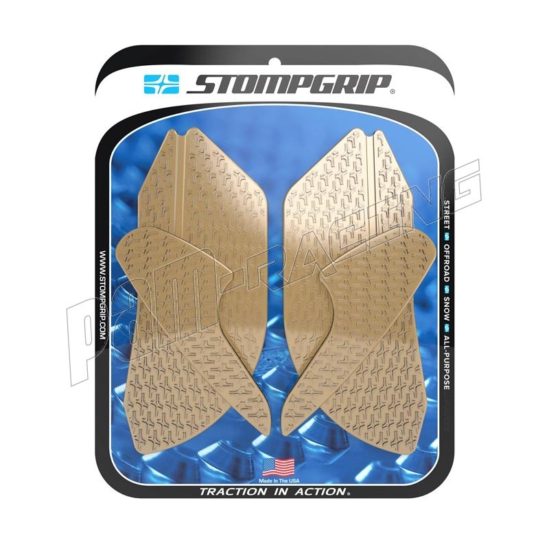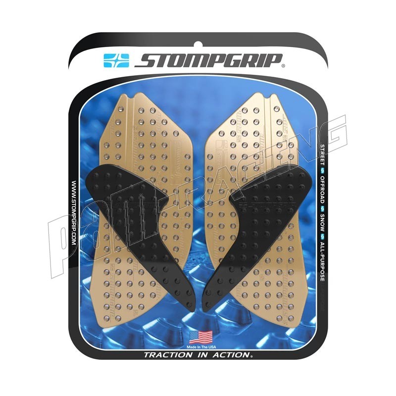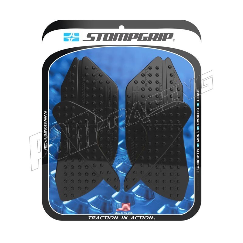 En 2002, STOMP Design élargit sa gamme jusqu'aux sports mécaniques, en lançant les grips de réservoir STOMPGRIP, spécialement conçus pour les moto-cross. Ces grips abrasifs ont pour vocation de garder le pilote en selle, en collant à son pantalon ou à ses bottes. Ils sont depuis lors applicables aux machines de route, de cross ou de quad. Ce sont finalement des accessoires indispensable, et des alliés contre la fatigue et le ballotage, quelle que soit votre machine de prédilection. Les grips sont spécialement conçus en fonction de la physionomie de chaque machine, ils sont également coupés à l'arrondis, afin d'éviter les décollements précoces. La surface en caoutchouc est soit transparente, soit noire, pour respecter l'esthétique de votre machine. Ces produits sont conçus pour s'user à la manière des pneus, et sont à remplacer périodiquement.