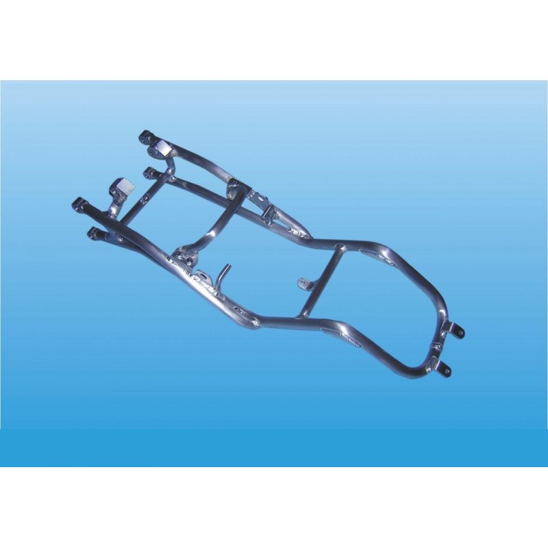 Ce châssis reprend les points de fixation d'origine, il est conçu avec un aluminium spécial alliant légèreté, résistance et flexibilité. Les soudures sont renforcées pour une meilleure résistance. De plus, il est conçu pour être simple à redresser lorsque c'est nécessaire.