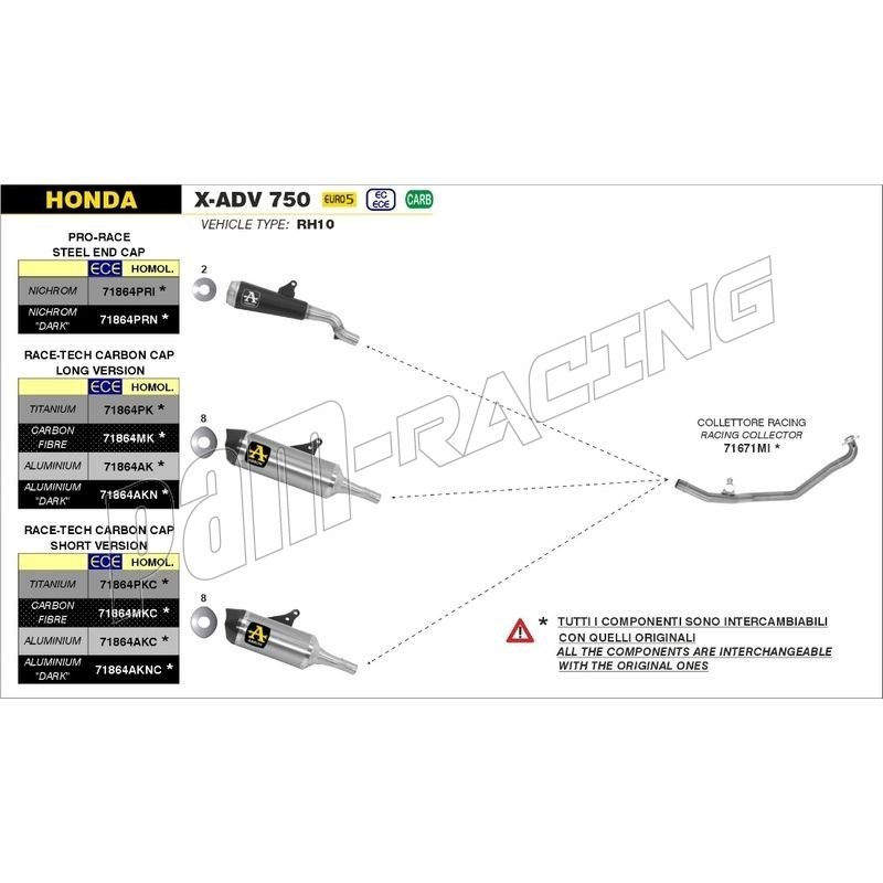 Les silencieux Pro-Race sont disponibles en version homologuée sur la voie publique et en version racing.