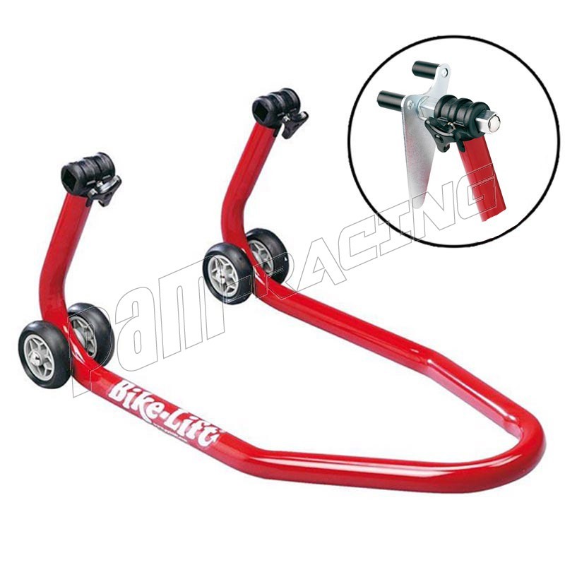 Bequille avant universelle rouge avec supports à rouleaux BIKE LIFT.