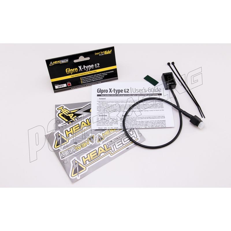 L'indicateur de rapport engagé Healtech pas plus gros qu'une pièce de 1€ (2x3cm) ! L'indicateur de rapport engagé GIPro Xtype de Healtech, est un tout petit afficheur étanche qui vous permet de connaitre en temps réel la vitesse enclenchée sur votre moto.