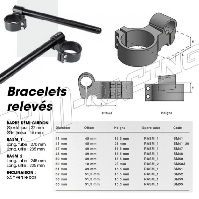 Bracelets & demi-guidons réhaussés 15 mm 6.5 degrés diam 41 mm BONAMICI RACING