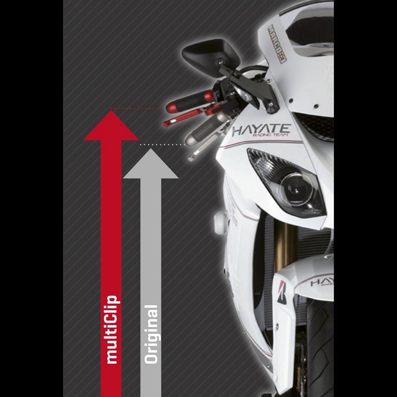 Des pack TOUR sont d'ores et déjà développés par ABM et comprennent tout le nécessaire pour un montage parfait, merci de nous contacter. (NOTA : Une moto équipée d'un grand guidon d'origine ne nécessite pas forcement d'autres pièces pour le montage si vous montez un Multi clip TOUR, nous contacter pour vérifier)