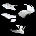 De plus, les carénages fibre de verre sont livrables en version allégée course. Ils sont également disponibles en carbone, carbone/kevlar, carbone/kevlar allégé ou titane/argent. Contactez-nous pour les finitions spéciales.