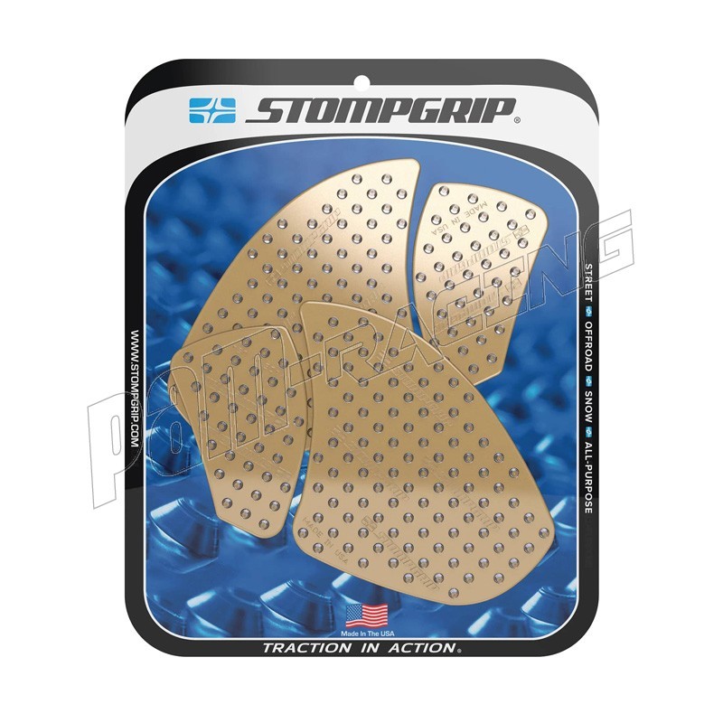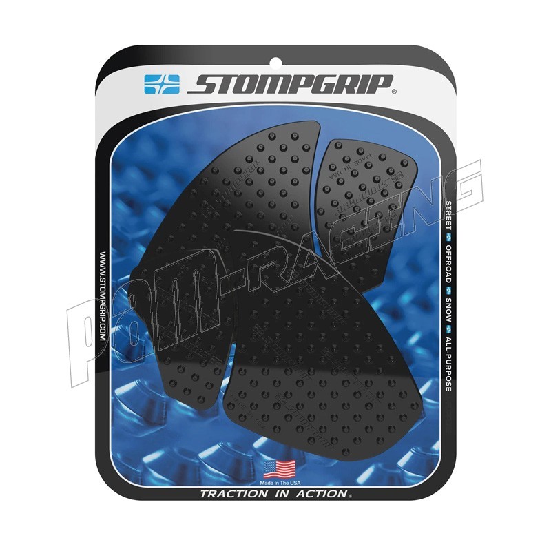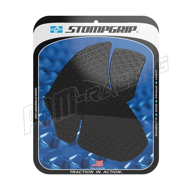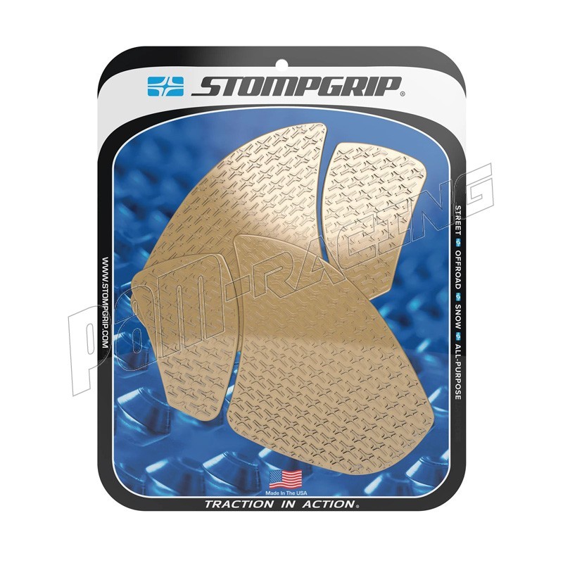 En 2002, STOMP Design élargit sa gamme jusqu'aux sports mécaniques, en lançant les grips de réservoir STOMPGRIP, spécialement conçus pour les moto-cross. Ces grips abrasifs ont pour vocation de garder le pilote en selle, en collant à son pantalon ou à ses bottes. Ils sont depuis lors applicables aux machines de route, de cross ou de quad. Ce sont finalement des accessoires indispensable, et des alliés contre la fatigue et le ballotage, quelle que soit votre machine de prédilection. Les grips sont spécialement conçus en fonction de la physionomie de chaque machine, ils sont également coupés à l'arrondis, afin d'éviter les décollements précoces. La surface en caoutchouc est soit transparente, soit noire, pour respecter l'esthétique de votre machine. Ces produits sont conçus pour s'user à la manière des pneus, et sont à remplacer périodiquement.