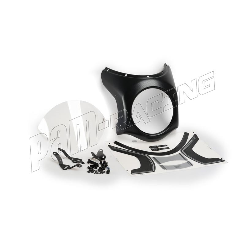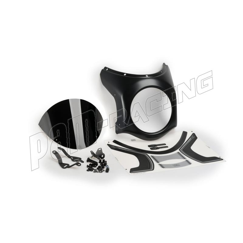 Puig possède deux types de carénages en fonction du diamètre du phare de votre moto: 195mm ou 180mm. De plus, Puig a créé, pour les modèles les plus populaires, un kit d’adhésif spécifique. Si vous avez besoin d'un modèle universel, Puig propose un kit de montage vous permettant de fixer la pièce à divers modèles de motos.