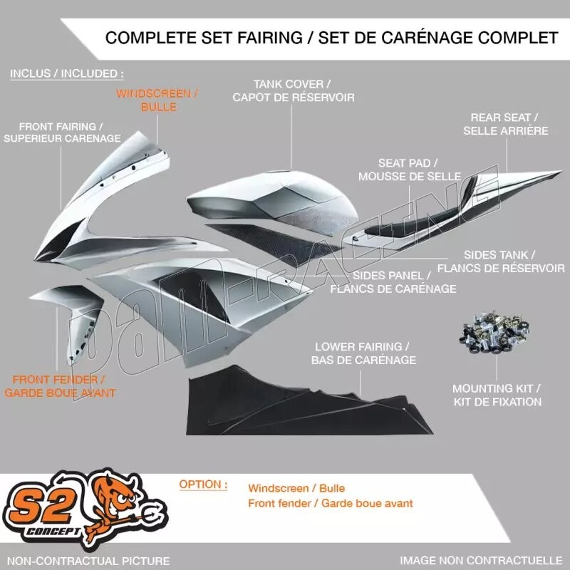 Carénage complet racing Trackday fibre de verre S2 CONCEPT ZX6R-636 2024-2026.