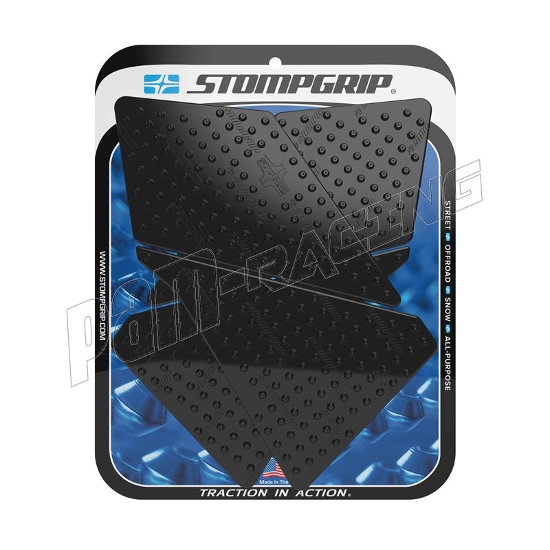 En 2002, STOMP Design élargit sa gamme jusqu'aux sports mécaniques, en lançant les grips de réservoir STOMPGRIP, spécialement conçus pour les moto-cross. Ces grips abrasifs ont pour vocation de garder le pilote en selle, en collant à son pantalon ou à ses bottes. Ils sont depuis lors applicables aux machines de route, de cross ou de quad. Ce sont finalement des accessoires indispensable, et des alliés contre la fatigue et le ballotage, quelle que soit votre machine de prédilection. Les grips sont spécialement conçus en fonction de la physionomie de chaque machine, ils sont également coupés à l'arrondis, afin d'éviter les décollements précoces. La surface en caoutchouc est soit transparente, soit noire, pour respecter l'esthétique de votre machine. Ces produits sont conçus pour s'user à la manière des pneus, et sont à remplacer périodiquement.
