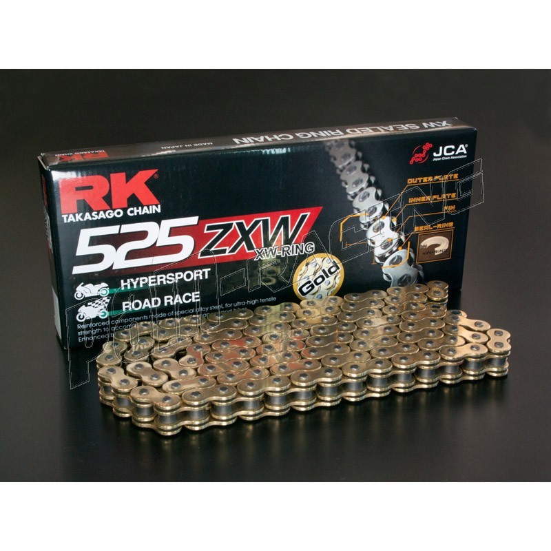 Chaine RK 525ZXW XW'Ring Ultra renforcée acier, or ou noir.