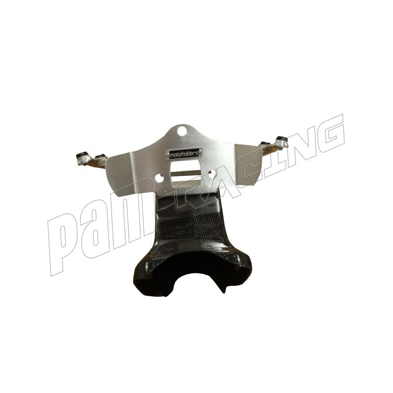 Cette araignée en aluminium proposée par Motoholders remplacera celle d'origine pour un gain de poids. Ce support se reprend sur les points de fixation d'origine, permet de fixer le compteur et le carénage, mais pas l'optique.