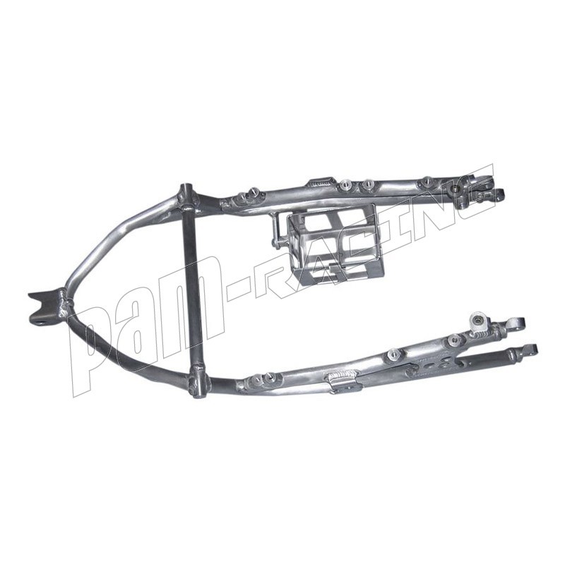 Ce châssis reprend les points de fixation d'origine, il est conçu avec un aluminium spécial alliant légèreté, résistance et flexibilité. Les soudures sont renforcées pour une meilleure résistance. De plus, il est conçu pour être simple à redresser lorsque c'est nécessaire.