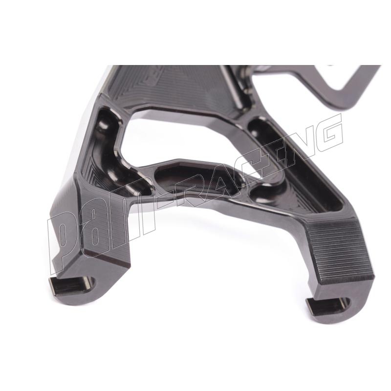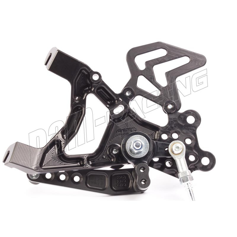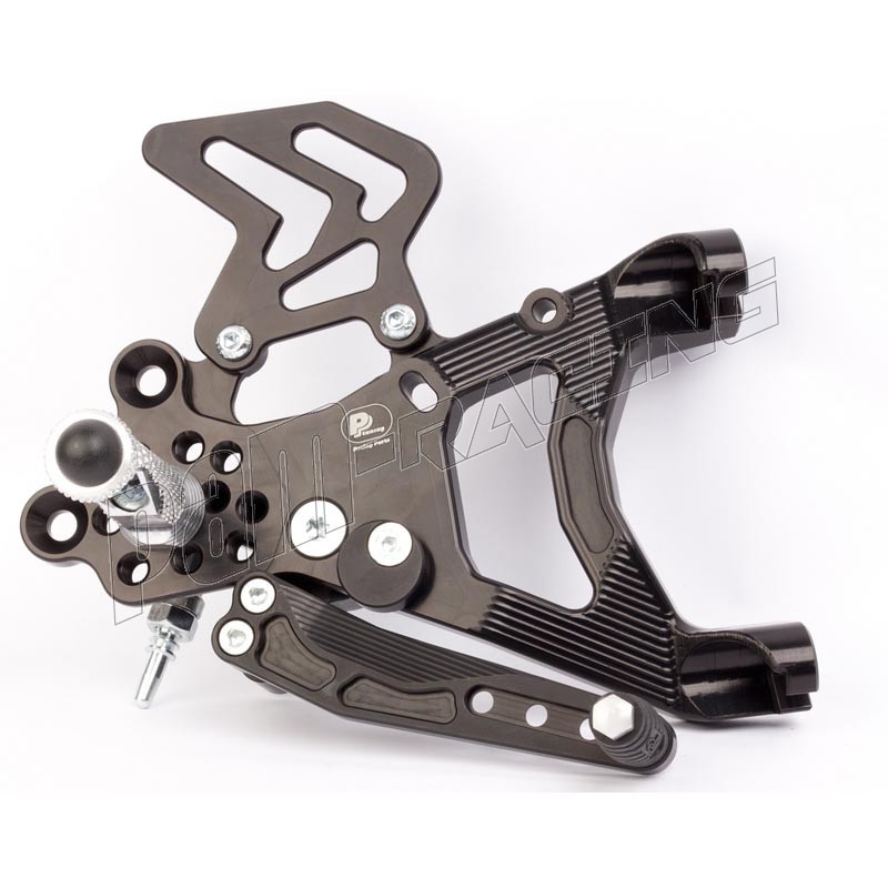 Chez les fabricants comme Arrow ou Akrapovic, par exemple, le pot d'échappement est fixé à la place du repose-pied arrière. Si vous gardez le pot d'échappement d’origine sur la moto ou vous montez un pot d'échappement compatible avec les repose-pieds d’origine, veuillez utiliser les commandes reculées PP Tuning avec le code 517F –ce kit dispose d'une patte de fixation de pot d'échappement directement sur les commandes reculées .