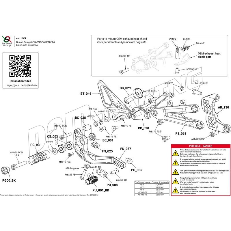 Pièces de rechange pour commandes reculées Bonamici Racing Panigale V4/V4S/V4R 2018-2024.