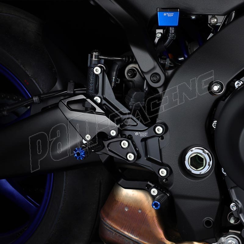 Les commandes reculées Bonamici Racing sont en alu taillé masse.