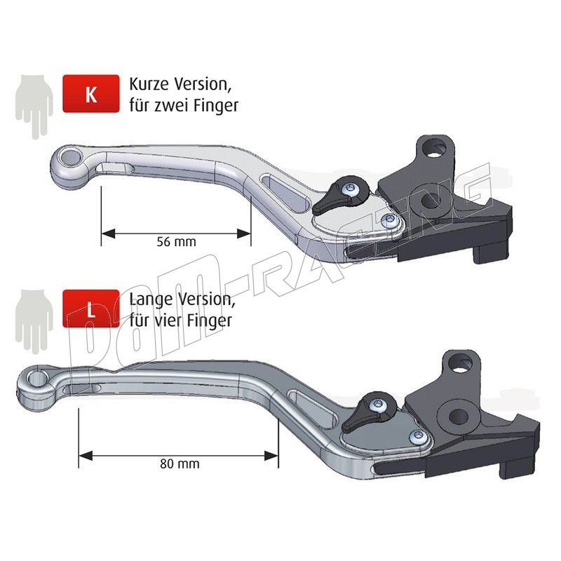 - version longue pour 4 doigts : environ 2 cm plus court que le levier d'origine.