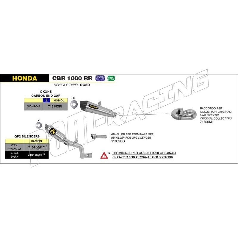 Silencieux GP2 titane ARROW CBR1000RR 2014-2016.