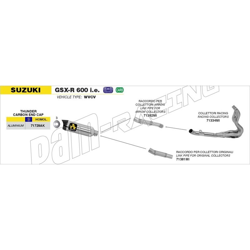 Silencieux Thunder aluminium embout carbone ARROW GSXR600, GSXR750 2008-2010.