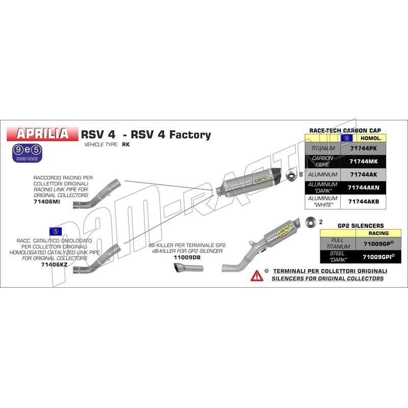 Silencieux GP2 inox dark ARROW RSV4 2009-2013, TUONO V4 2011-2014.