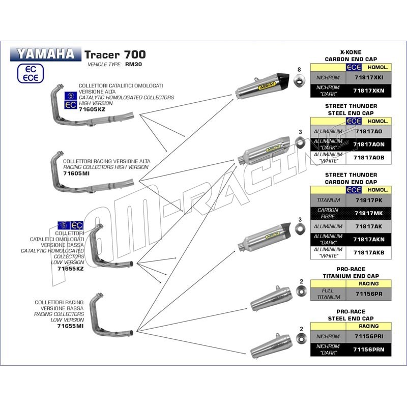 Collecteur catalytique homologué inox ARROW MT-07, MT-07 Tracer 2014-2020.