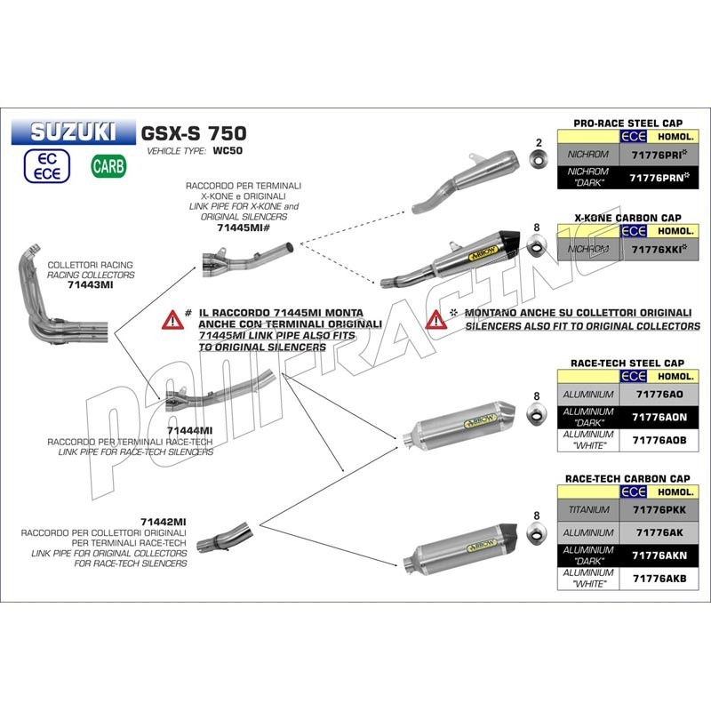 Raccord inox pour collecteur racing et silencieux d'origine ou X-Kone ou Pro Race ARROW GSR750 2011-2016, GSX-S750 2017-2020.