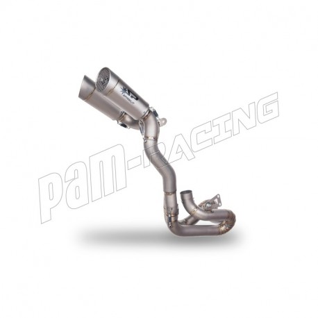 - Système 3/4 ligne, composé d'un ensemble tubulure inox ou titane et d'un double silencieux GRID-O Titanium passant sous la selle (côté droit et gauche).