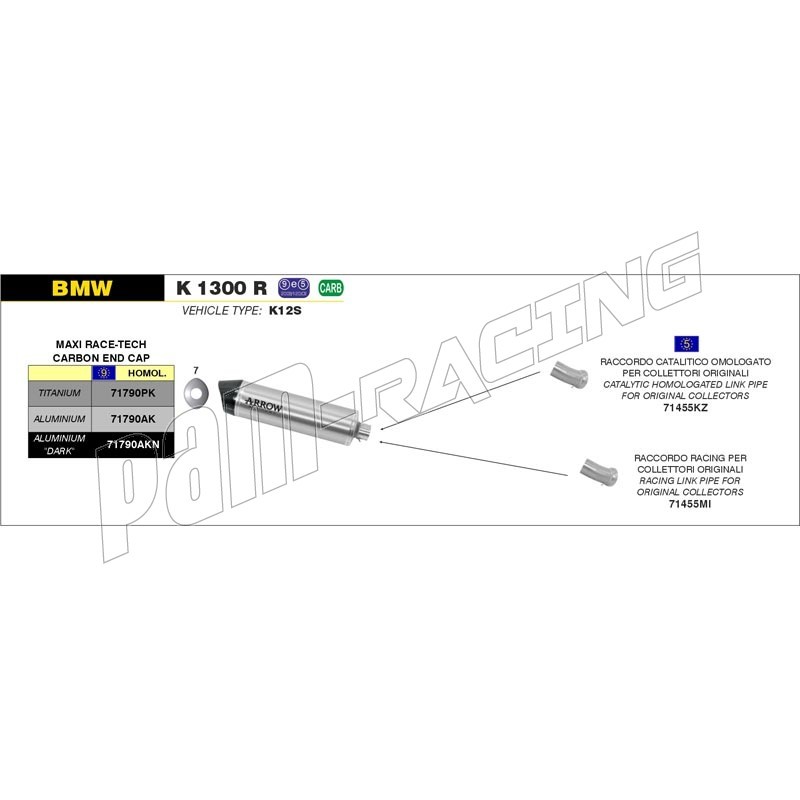 Raccord racing ARROW inox K1300R 2009-2015, K1300S 2012-2015