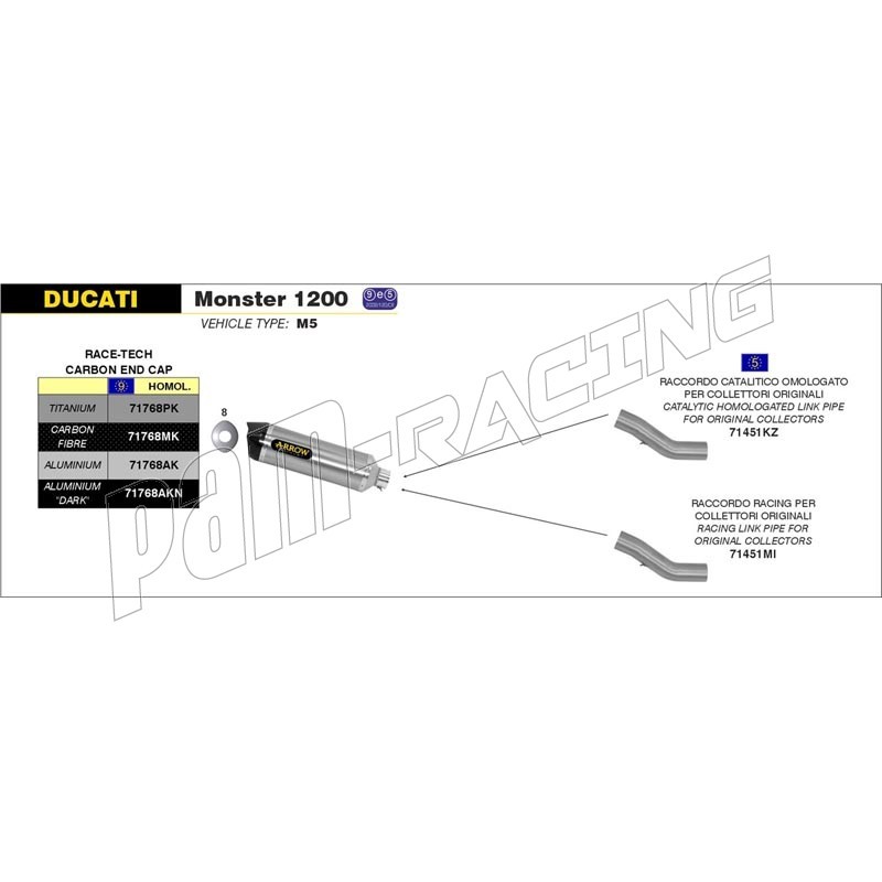 Silencieux RACE-TECH homologué ARROW Monster 821, Monster 1200, Diavel, Multistrada