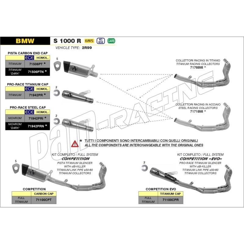 Collecteur Racing titane ARROW S1000RR 2019-2026, M1000RR 2021-2024, S1000R 2021-2026, M1000R 2023-2026