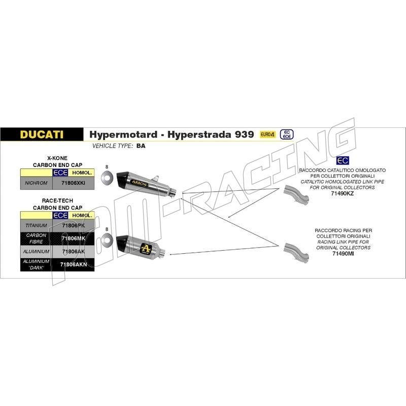 Silencieux RACE-TECH alu noir ARROW embout carbone Hypermotard/Hyperstrada 2013-2018