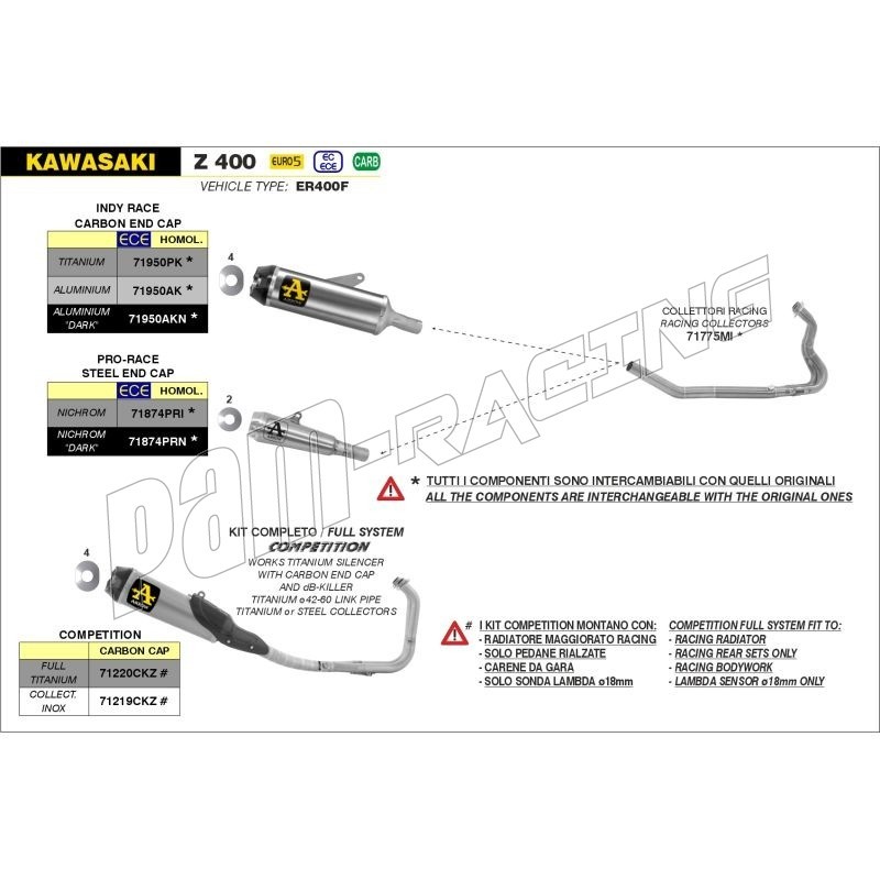 Silencieux Indy Race alu noir embout carbone ARROW Ninja 400, Z400 2023