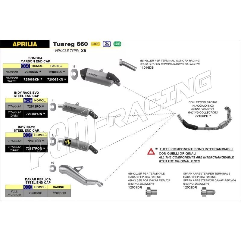 Silencieux Indy Race EVO homologué titane avec embout en inox ARROW Tuareg 660 2020-2025
