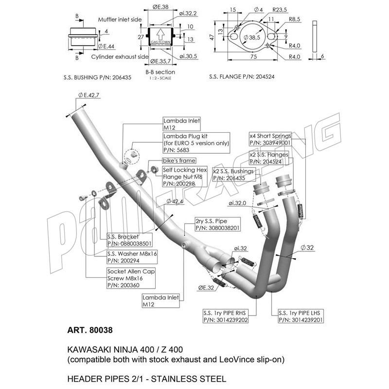 Collecteur inox pour Ninja 400 2018-2023, Z400 2019-2023, Ninja 500 2024-2025, Z500 2024-2025 LEOVINCE.