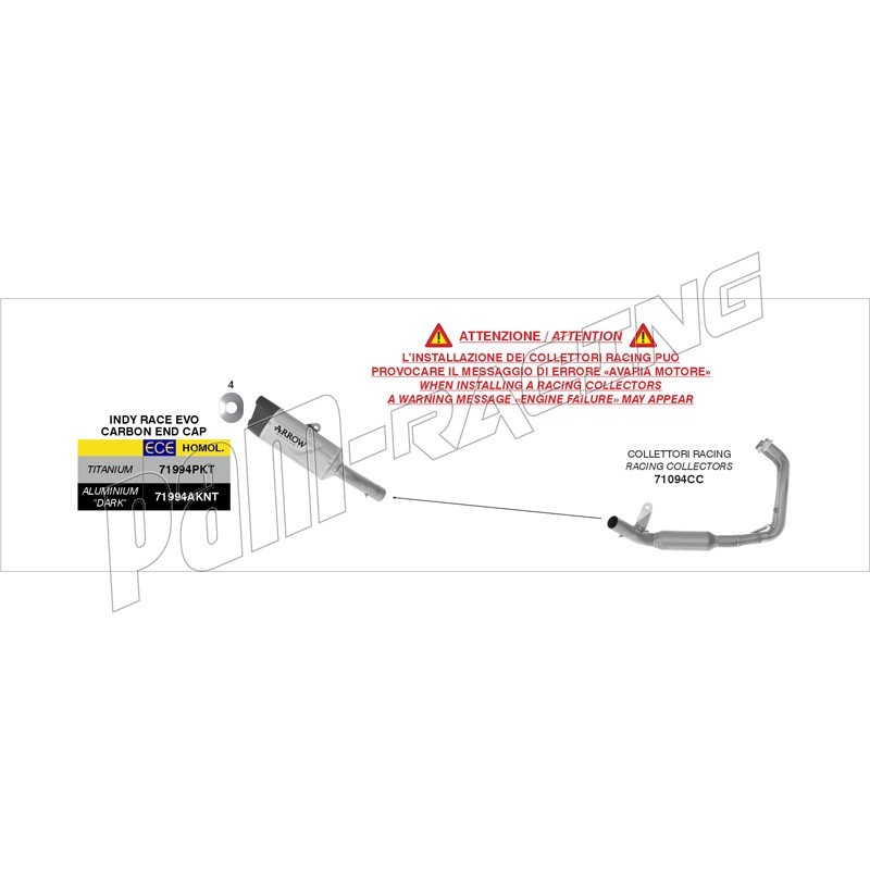 Il est obligatoire d'installer le collecteur racing Arrow 71094CC pour le montage de votre échappement (disponible séparement, voir bas de page).