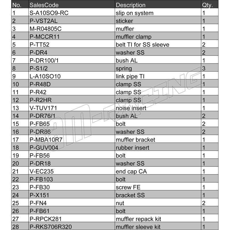 Pièces de rechange pour silencieux adaptable SLIP-ON mono silencieux carbone Akrapovic RSV4 RF/RR 2017-2020, TUONO V4 1100 2017-2020.