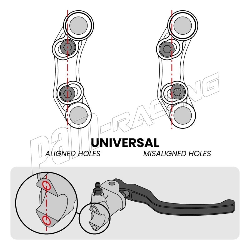 Fixation du commodo : sur maître-cylindre d'origine ou BREMBO PR16/PR19.