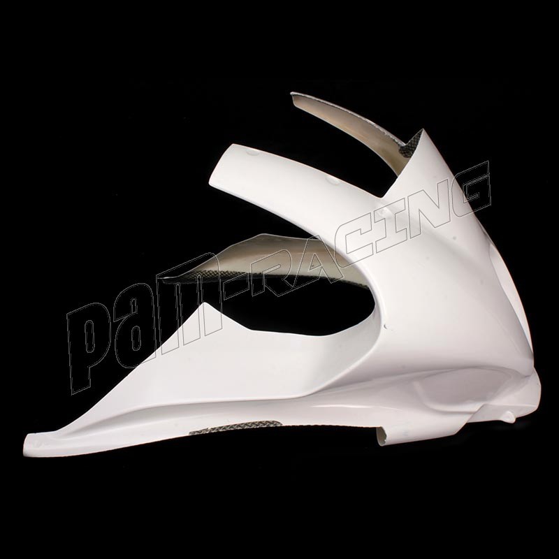 Pièce de carénage prêt à peindre, finition glecoat blanc. Ajustement et montage aisé, les carénages Sebimoto reprennent les points de fixation d'origine. Ces points de fixation sont renforcés en carbone kevlar pour un meilleur maintien. Sebimoto fabrique des carénages légers, mais tout en conservant leur résistance. Flexible, limite la casse en cas de chute. Composition : 4 couches de fibre, finition tissu + gelcoat blanc.
