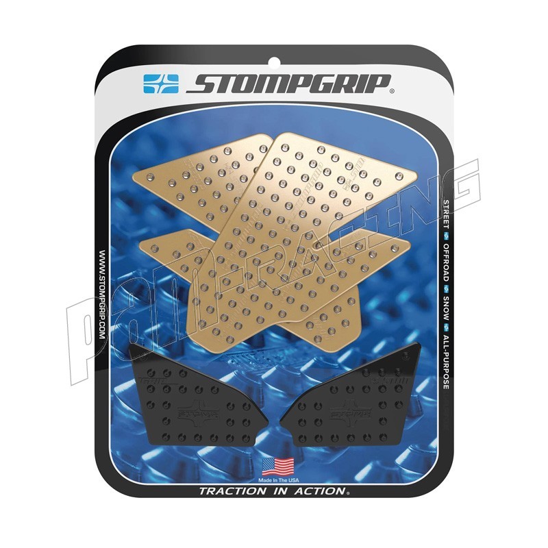 En 2002, STOMP Design élargit sa gamme jusqu'aux sports mécaniques, en lançant les grips de réservoir STOMPGRIP, spécialement conçus pour les moto-cross. Ces grips abrasifs ont pour vocation de garder le pilote en selle, en collant à son pantalon ou à ses bottes. Ils sont depuis lors applicables aux machines de route, de cross ou de quad. Ce sont finalement des accessoires indispensable, et des alliés contre la fatigue et le ballotage, quelle que soit votre machine de prédilection. Les grips sont spécialement conçus en fonction de la physionomie de chaque machine, ils sont également coupés à l'arrondis, afin d'éviter les décollements précoces. La surface en caoutchouc est soit transparente, soit noire, pour respecter l'esthétique de votre machine. Ces produits sont conçus pour s'user à la manière des pneus, et sont à remplacer périodiquement.